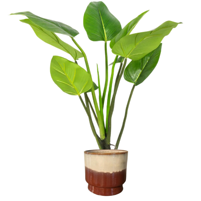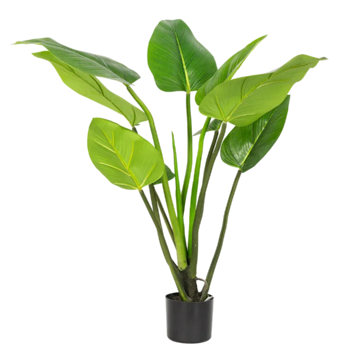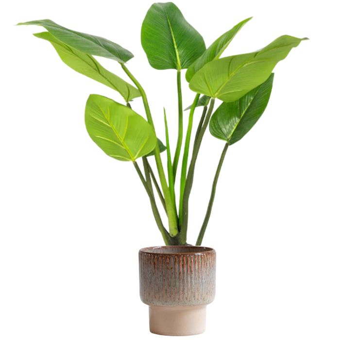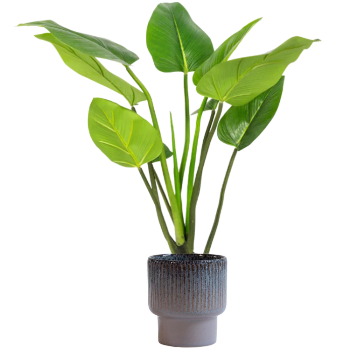 De 90 cm Alocasia Plant is een stijlvol tropisch accent met grote, diep groene bladeren en een frisse, moderne uitstraling. Dankzij het volle bladwerk en de verfijnde nerven is deze plant een echte blikvanger in zowel horeca, kantoren, hotels als moderne interieurs. Een compact, maar royaal statement — volledig onderhoudsvrij.