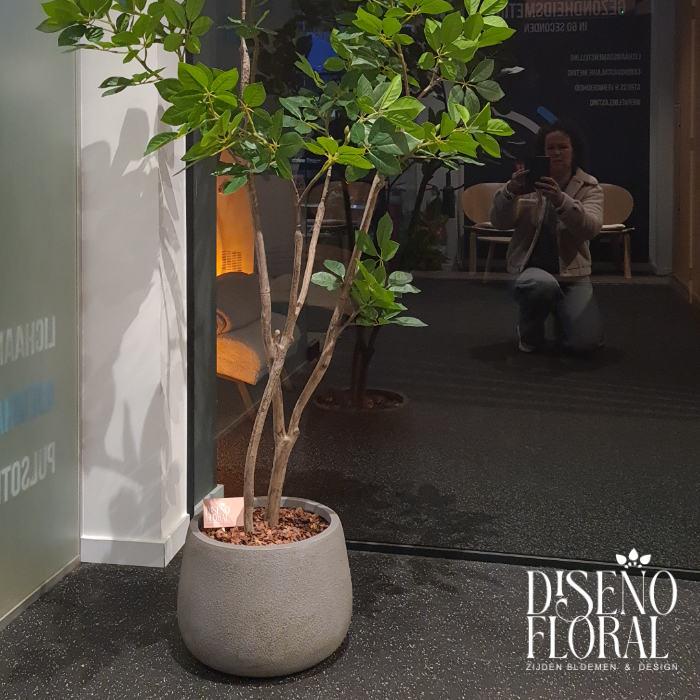 De 150 cm Trompet Boom is een verfijnde en elegante kunstboom met weelderige, trompetvormige bladeren die direct sfeer geven aan iedere ruimte. Dankzij de ideale hoogte en natuurlijke vorm is deze boom perfect voor moderne woonkamers, kantoren, restaurants of events. Stijlvol, tijdloos en volledig onderhoudsvrij.