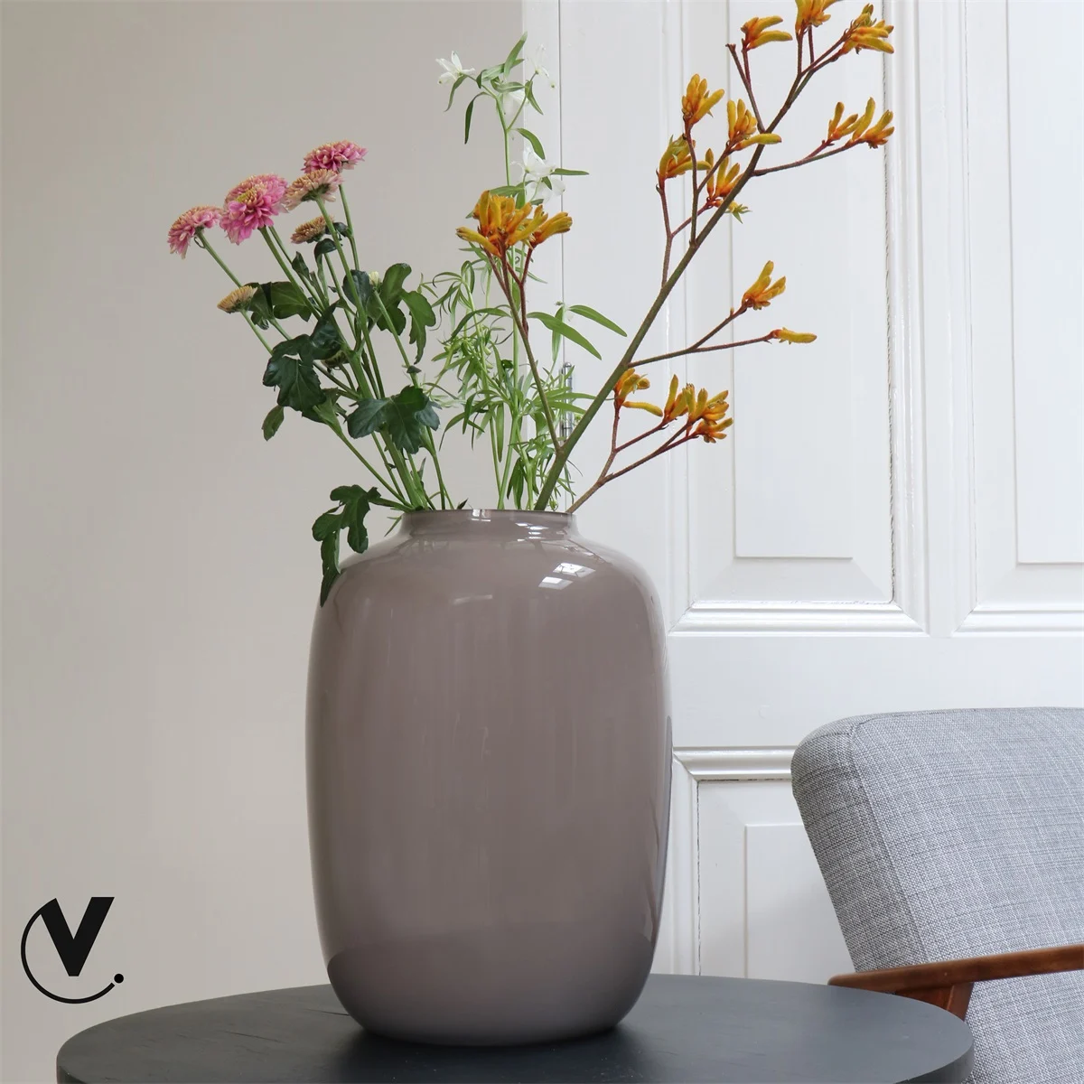 Deze vaas schreeuwt om een mooi boeket! Ga voor een kleurrijk of juist rustig geheel, met een zijdenboeket. Deze veelzijdige basic zal hoe dan ook een prachtig display zijn voor jouw product! Maak de vaas schoon met een droog en zacht doekje. Indien nodig, kan je een beetje water toevoegen en voorzichtig poetsen, zonder te hard te wrijven. Droog de vaas daarna goed af. De vazen zijn niet geschikt voor de vaatwasser.