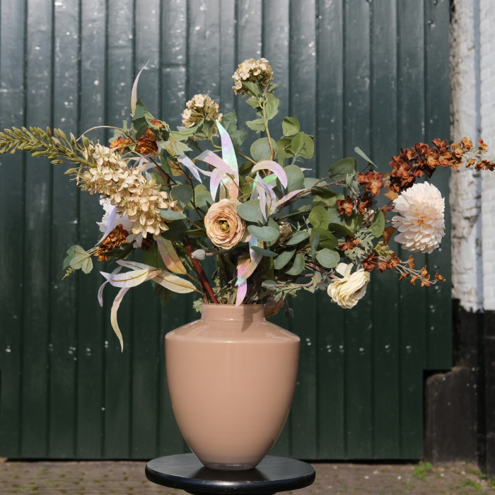 Onze kunstbloemen vergen weinig onderhoud. Je kunt ze afstoffen met een plumeau om stof of vuil te verwijderen. Als ze vuil worden, kun je ze schoonmaken met een milde zeep- en wateroplossing.